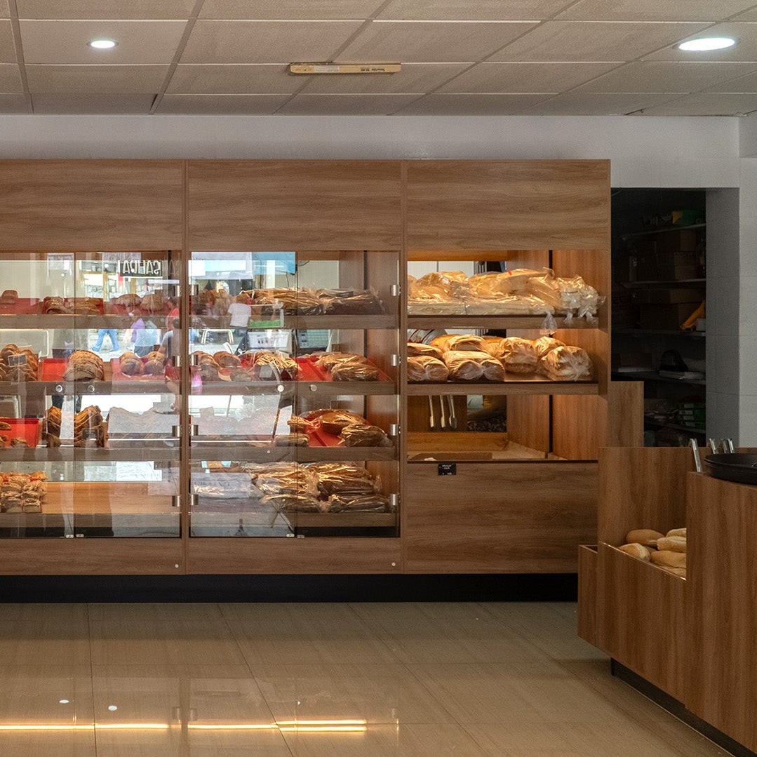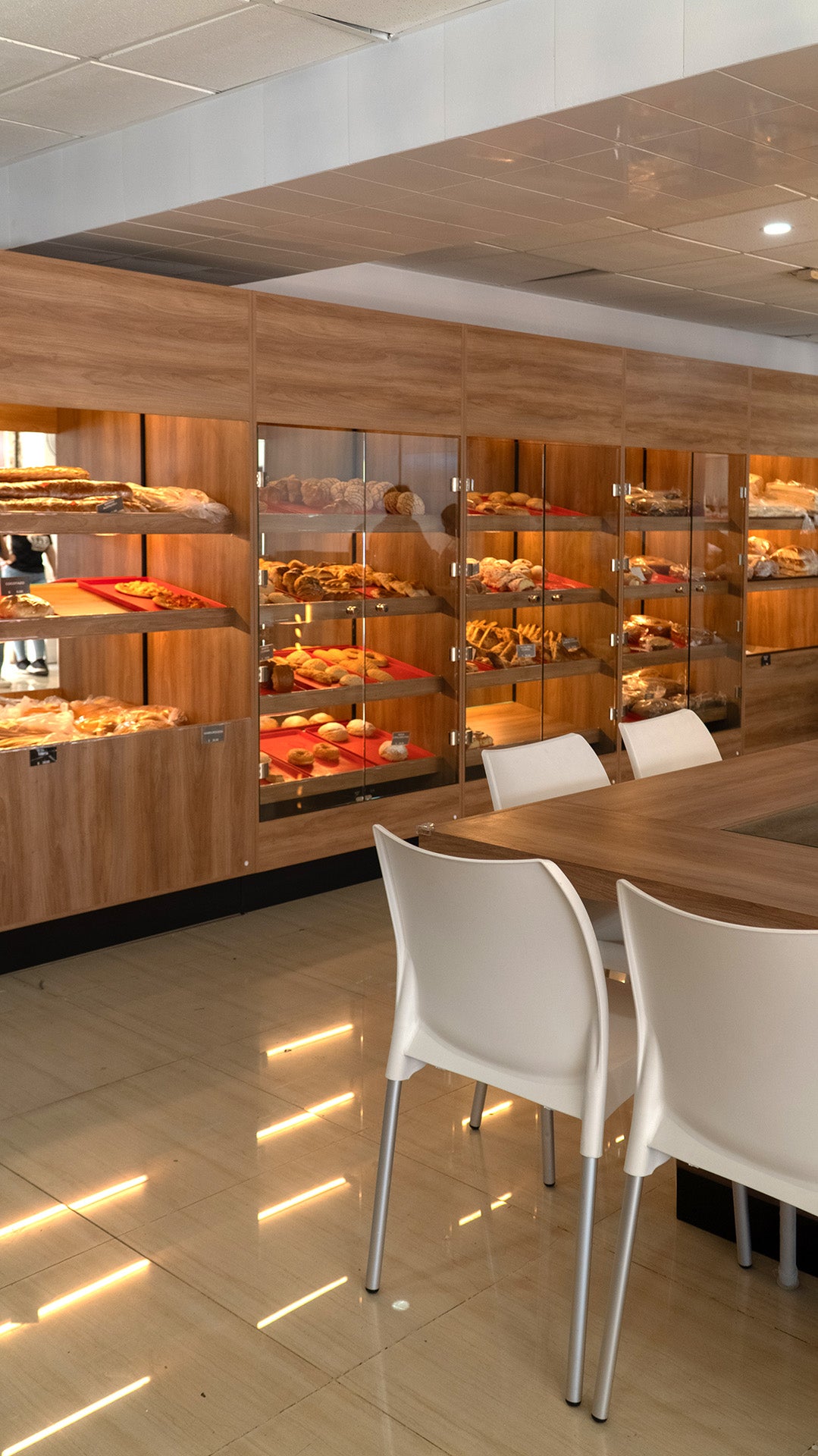 Proyecto de interiorismo y fabricación de mobiliario en melamina para la renovación de la reconocida Panadería Castillo, ubicada frente al Mercado San Benito. Este trabajo marcó el inicio del refresh integral de la cadena, modernizando la imagen del espacio y mejorando la experiencia del cliente sin perder la esencia tradicional de la marca.