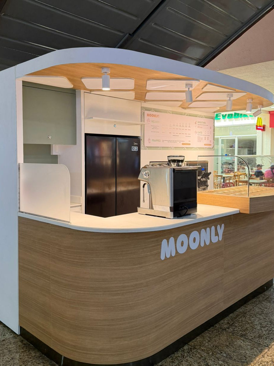 Diseño y ejecución de un punto de venta (POP) para la marca Moonly, especializada en helados de yogurth, frappés y bebidas frías. El proyecto incluyó el desarrollo de un módulo funcional y visualmente atractivo, optimizando el espacio comercial dentro de Plaza Las Américas y alineándolo con la identidad fresca y moderna de la marca.