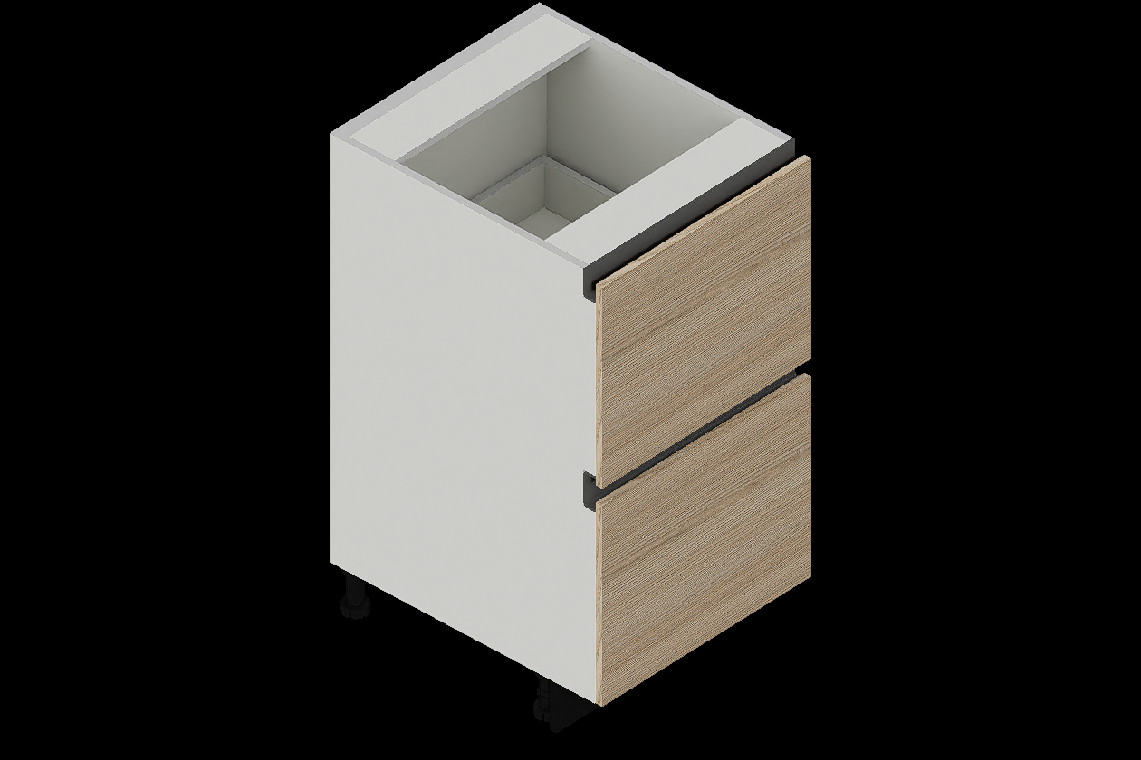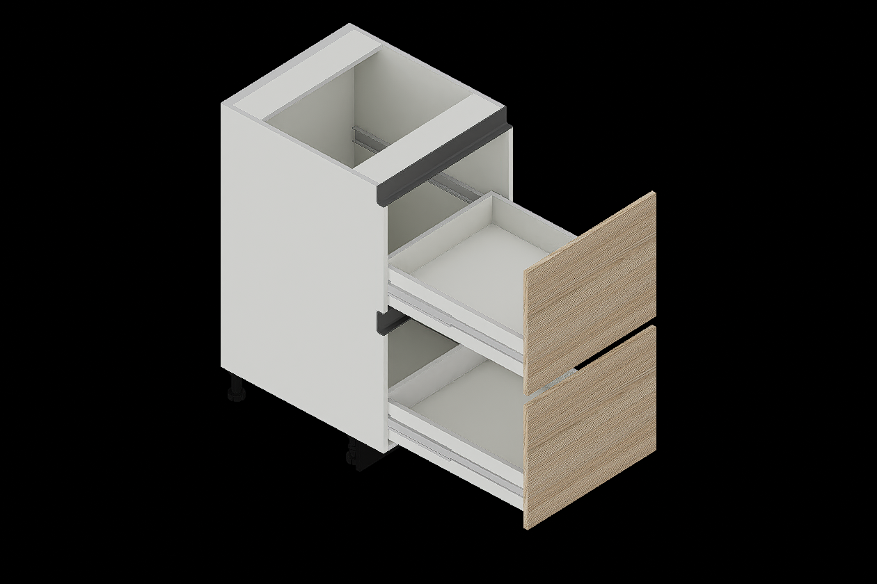 Combinación funcional con un cajón superior y una gaveta inferior con entrepaño, ideal para optimizar espacio.