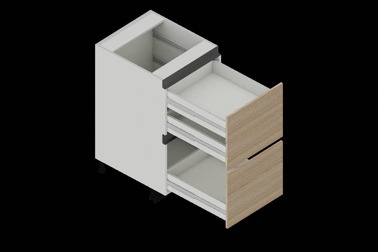 Versión con entrepaño interno y sin fondo, adaptable para distintos usos dentro de la cocina.