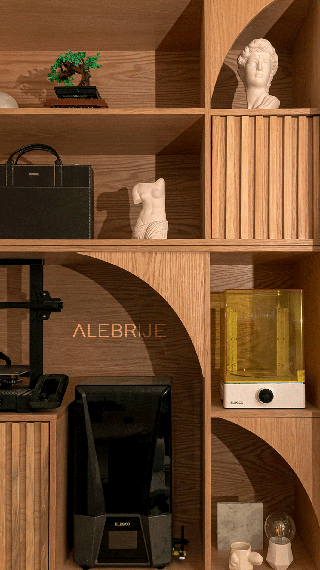 El “Mueble Armonia” se caracteriza por su diseño arquitectónico que mezcla líneas curvas y rectas, logrando un equilibrio visual. Sus compartimentos son versátiles para almacenamiento y exhibición, mientras que su acuario inferior añade un toque natural al espacio. Es perfecto para quienes desean una pieza que combine elegancia, modernidad y conexión con la naturaleza.
