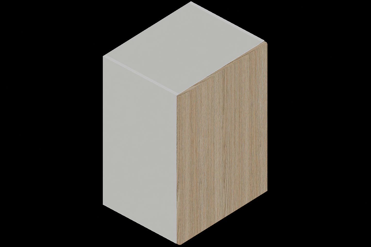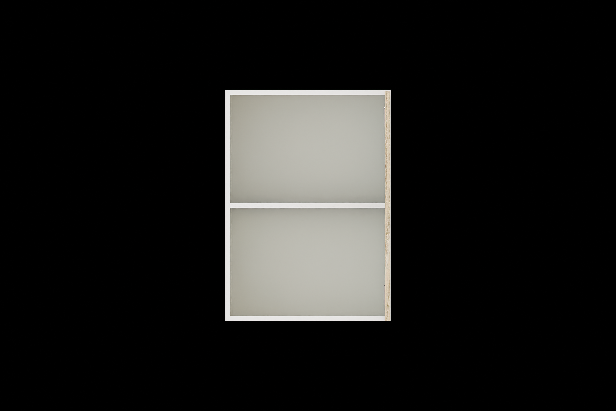 Módulo aéreo con una puerta abatible mediante bisagras bidimensionales y entrepaño interno.